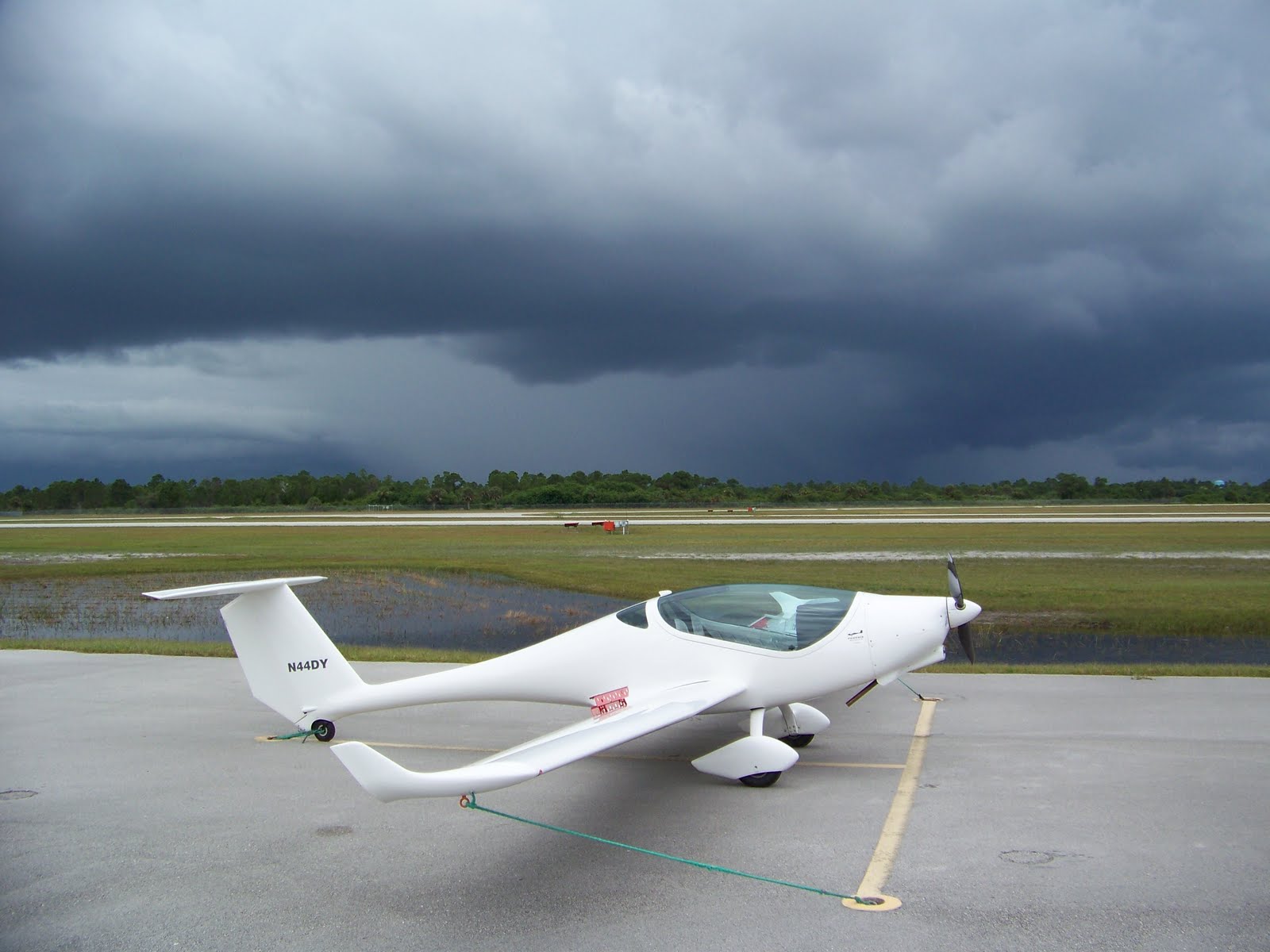 Dennis and I were doing take offs and landings at Valkaria when the storm approaching from the north chased us off to Sebastian airport. So we tied down the Phoenix, and took cover in the pilot lounge there until it passed and then flew back to Melbourne.